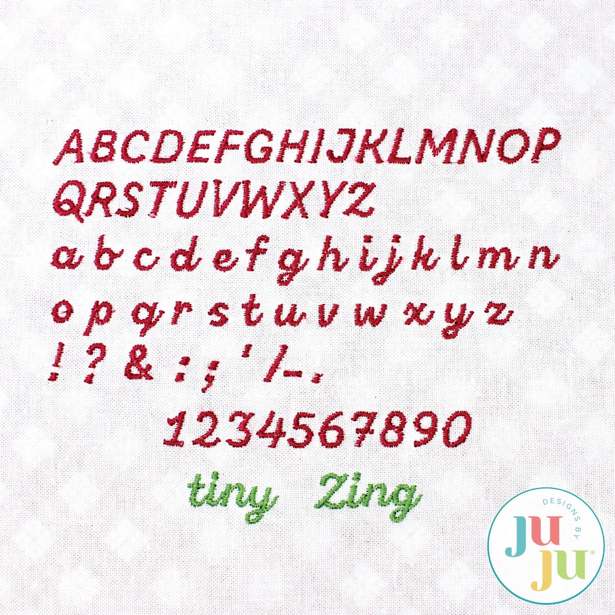 This small font was entirely digitized manually to ensure perfect start and ending of each letter. Each letter starts on the left and ends on the right, closest to the next letter. The font was digitized specifically with 60 wt threads and 65/9 needles in mind. All capital letters of this font are block letters, all lower case script.